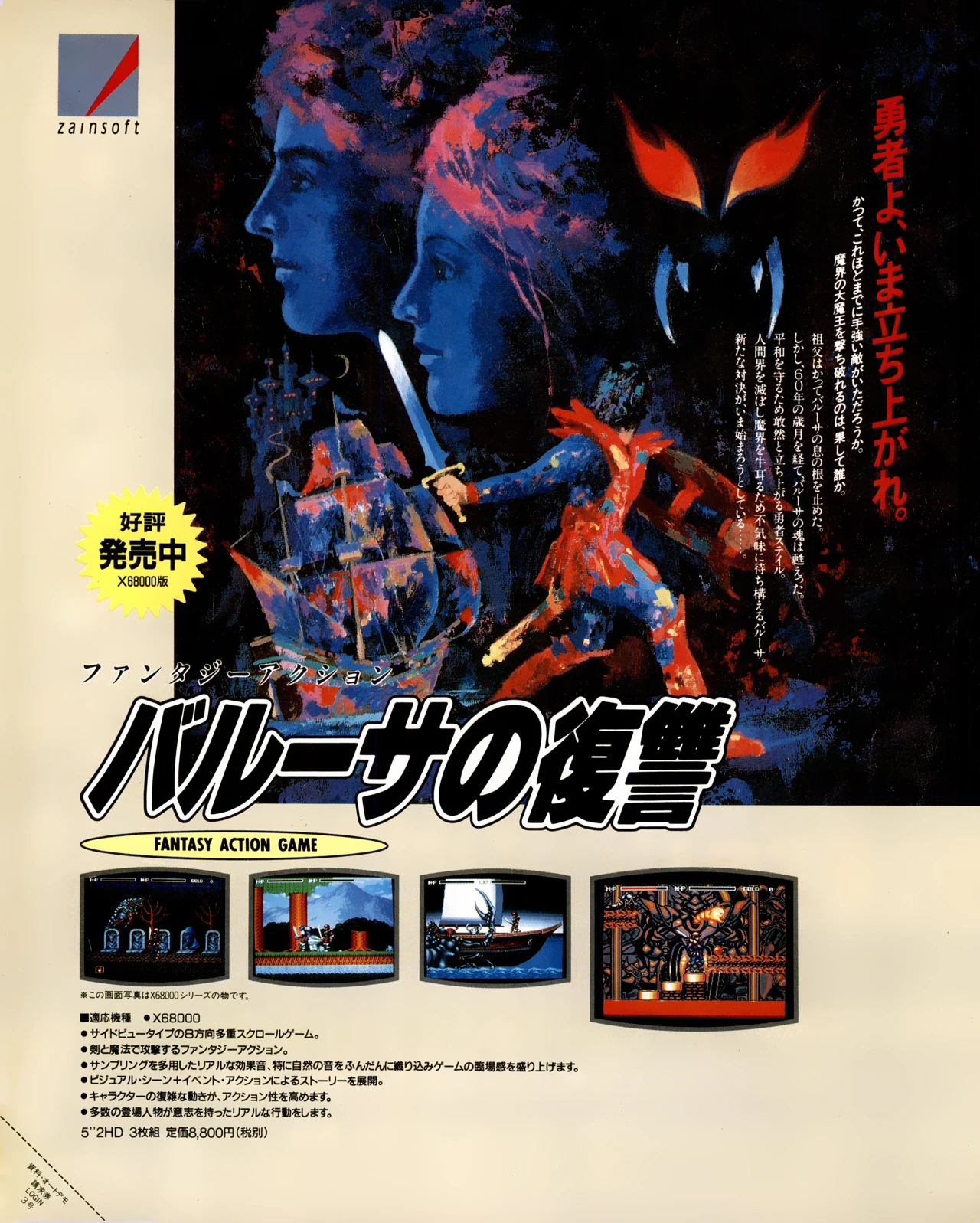 ザインソフトは知る人ぞ知るメーカ。色々な意味で伝説になったメーカである。そんな「バルーサの復讐」はザインソフトの末期に作られた作品だ。それまでのザイン作品はゲーム性以前の問題点で話題を呼んだ。今作も迷作入りかと思わせるが、意外に健闘している。逆に書くと「らしさ」を失ったとも言え、ザインソフトの熱狂的ファンには残念な仕上がりになっている。