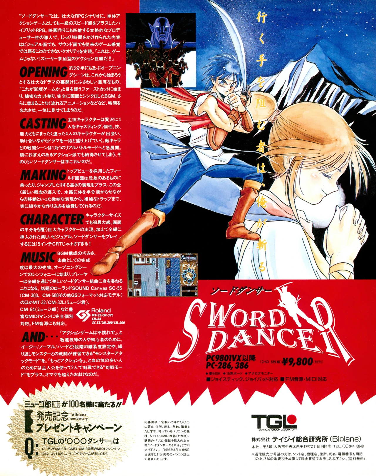 キャラクターサイズでも98最大級。画面半分をも覆う巨大キャラクターの出現、加えて全編に挿入された美しいビジュアル。ソードダンサーをプレイするには15インチCRTじゃ小さすぎる!